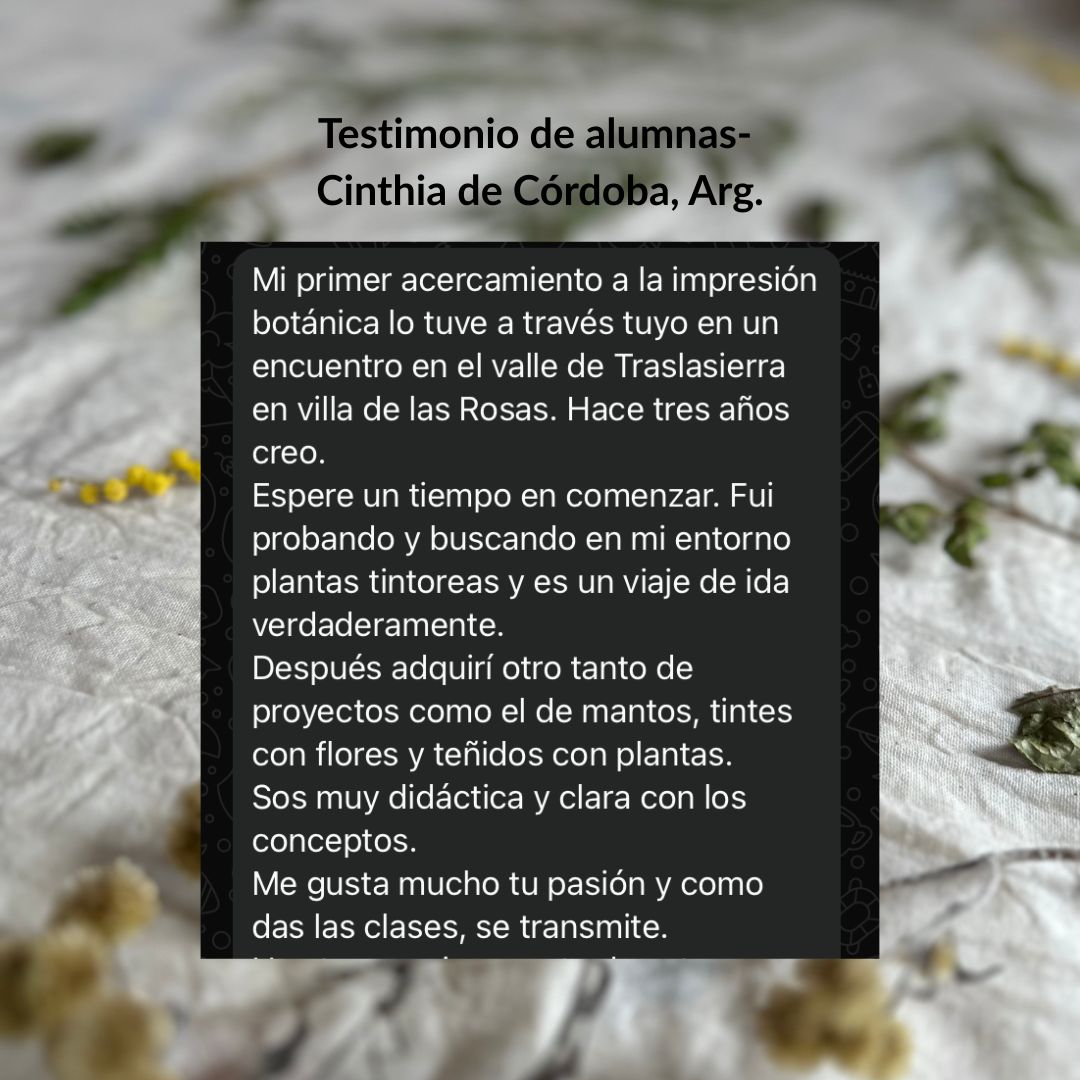 Hola! Soy nati y recién acabo de descubrir mi ecoprint y estoy demasiado contenta que exploto de la felicidad. Súper recomiendo este taller ya que Ale es una belleza explicando y se entiende a la perfección. Gracias por esta maravilla de taller vas a aprender mucho.